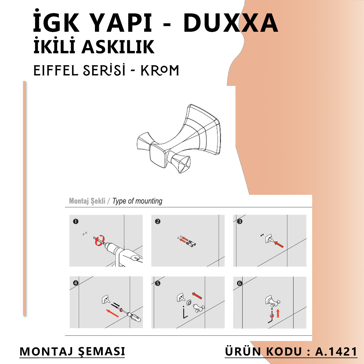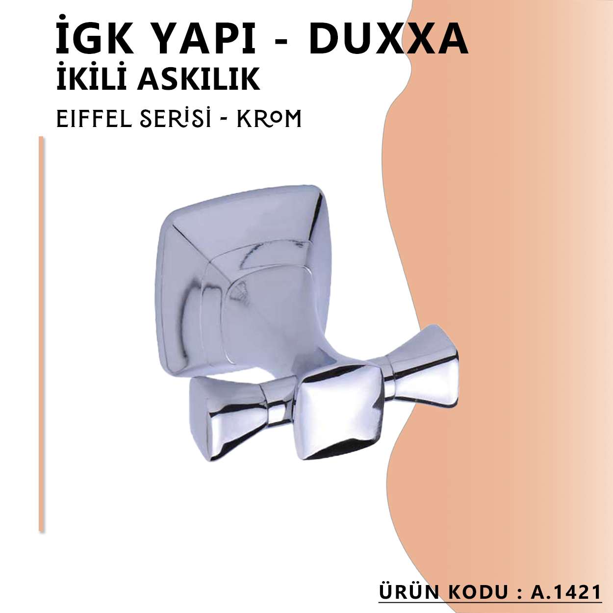 taşır. İGK YAPI - Duxxa Eiffel İkili Askılık Krom (A.1421) ile banyonuzda bir yenilik ve