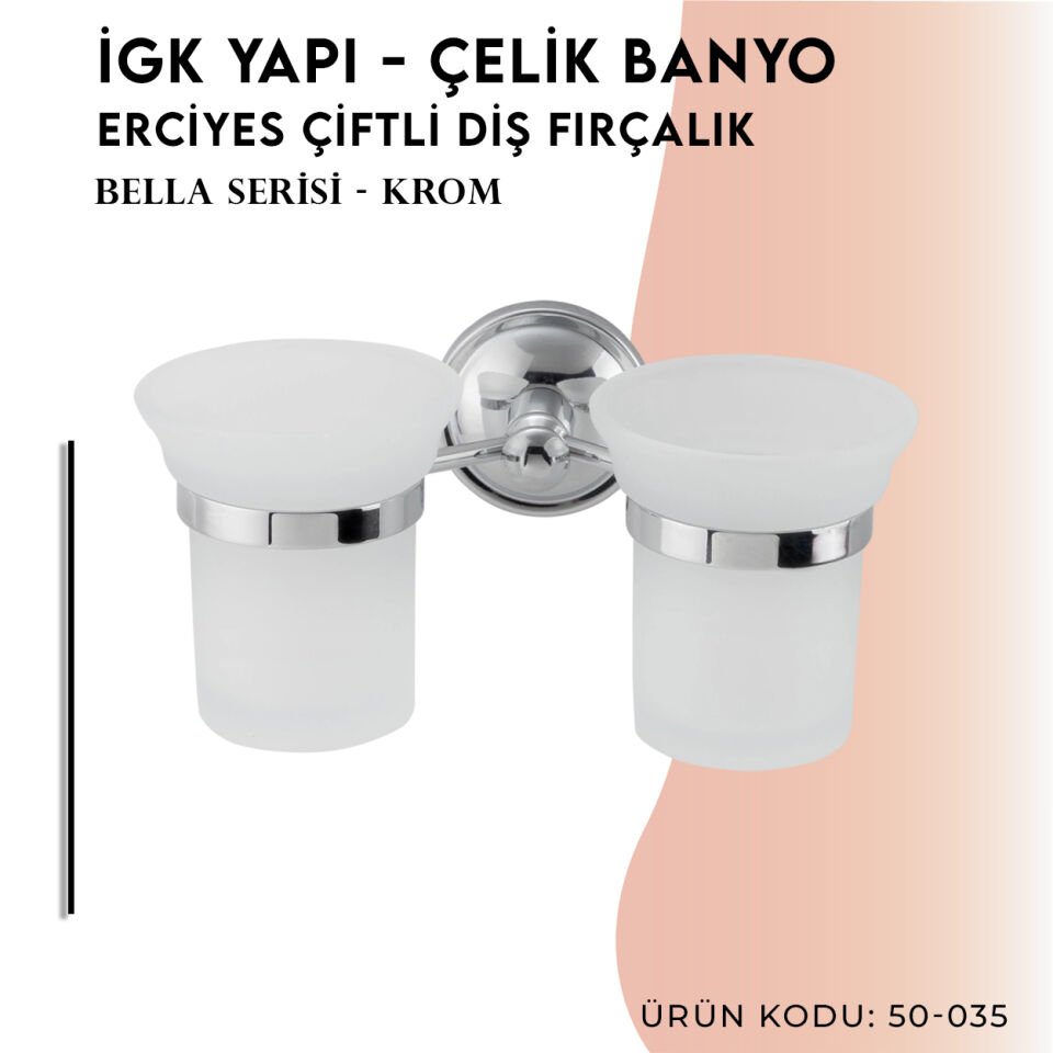 Öne çıkan özellikleriyle İGK YAPI - Çelik Banyo Bella Erciyes Çiftli Diş Fırçalık (50-035):