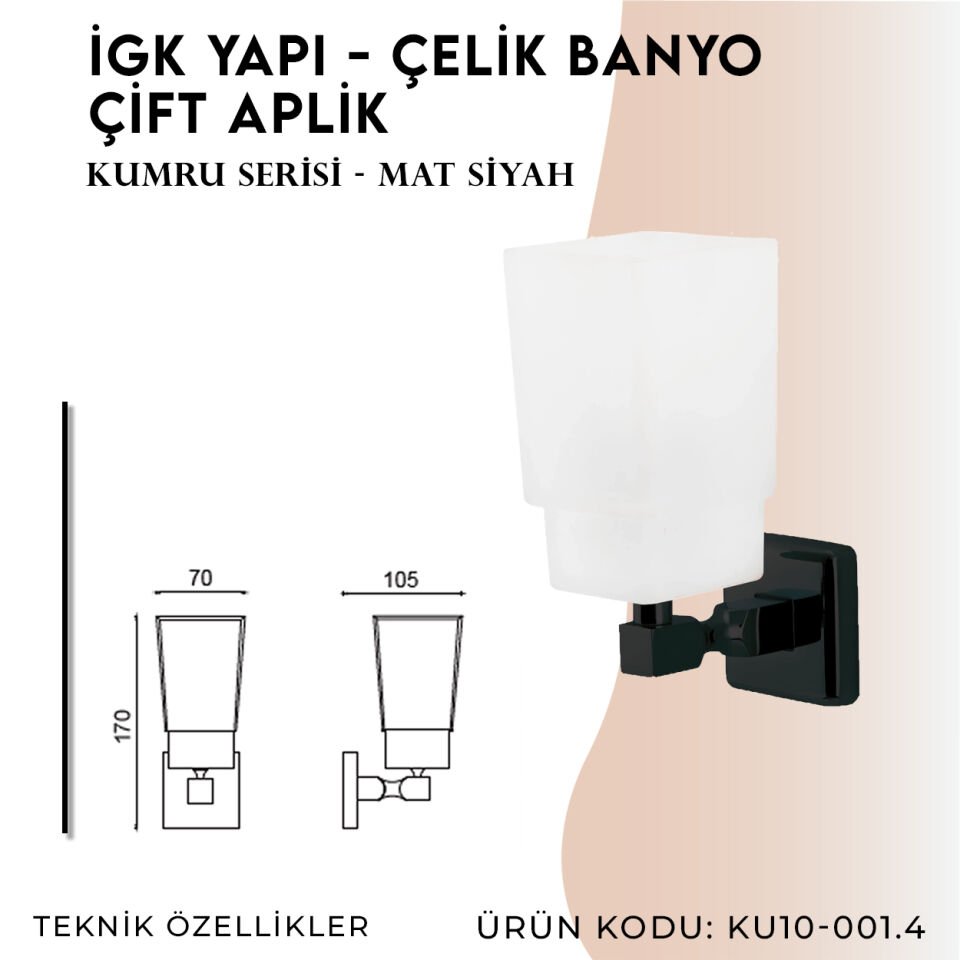 İGK YAPI - Çelik Banyo Kumru Mat Siyah Çift Aplik (KU10-001.4) tasarımı, kaliteli malzemesi ve