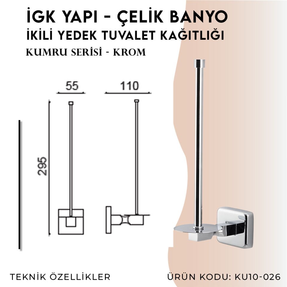 İGK YAPI - Çelik Banyo Kumru Yedek İkili Tuvalet Kâğıtlığı (KU10-026) tasarımı, kaliteli malzemesi ve