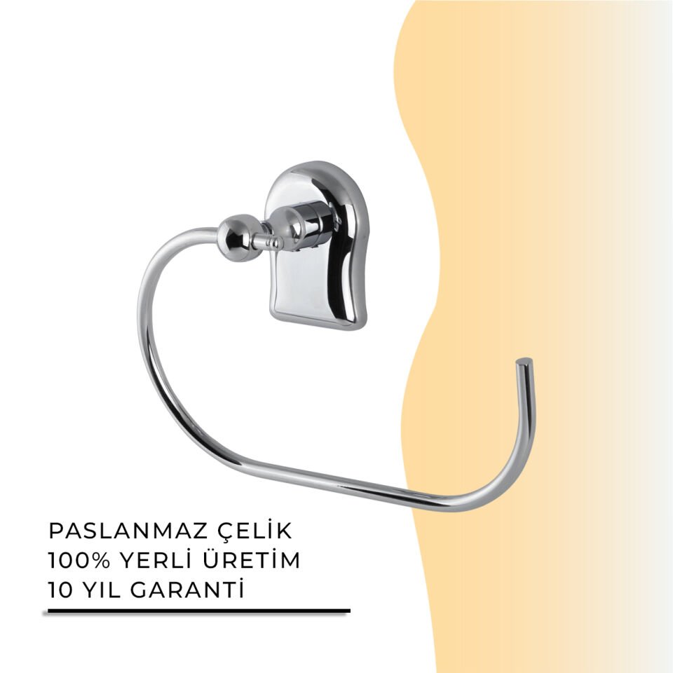 - Uyumluluk ve Seri :L10-008 Yuvarlak Havluluk, Çelik Banyo'nun Lale serisinin diğer ürünleriyle uyumlu bir tasarıma sahiptir. Aynı seriden diğer aksesuarlarla bira araya getirildiğinde banyonuzda bütünlük sağlar.