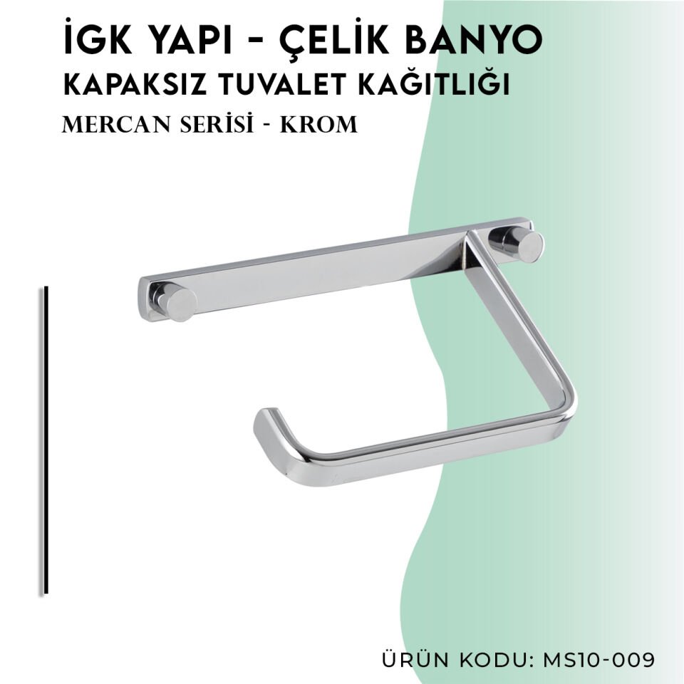 - Uyumluluk ve Seri :MS10-009 Açık Tuvalet Kâğıtlığı, Çelik Banyo'nun Mercan serisinin diğer ürünleriyle uyumlu bir tasarıma sahiptir. Aynı seriden diğer aksesuarlarla bira araya getirildiğinde banyonuzda bütünlük sağlar.