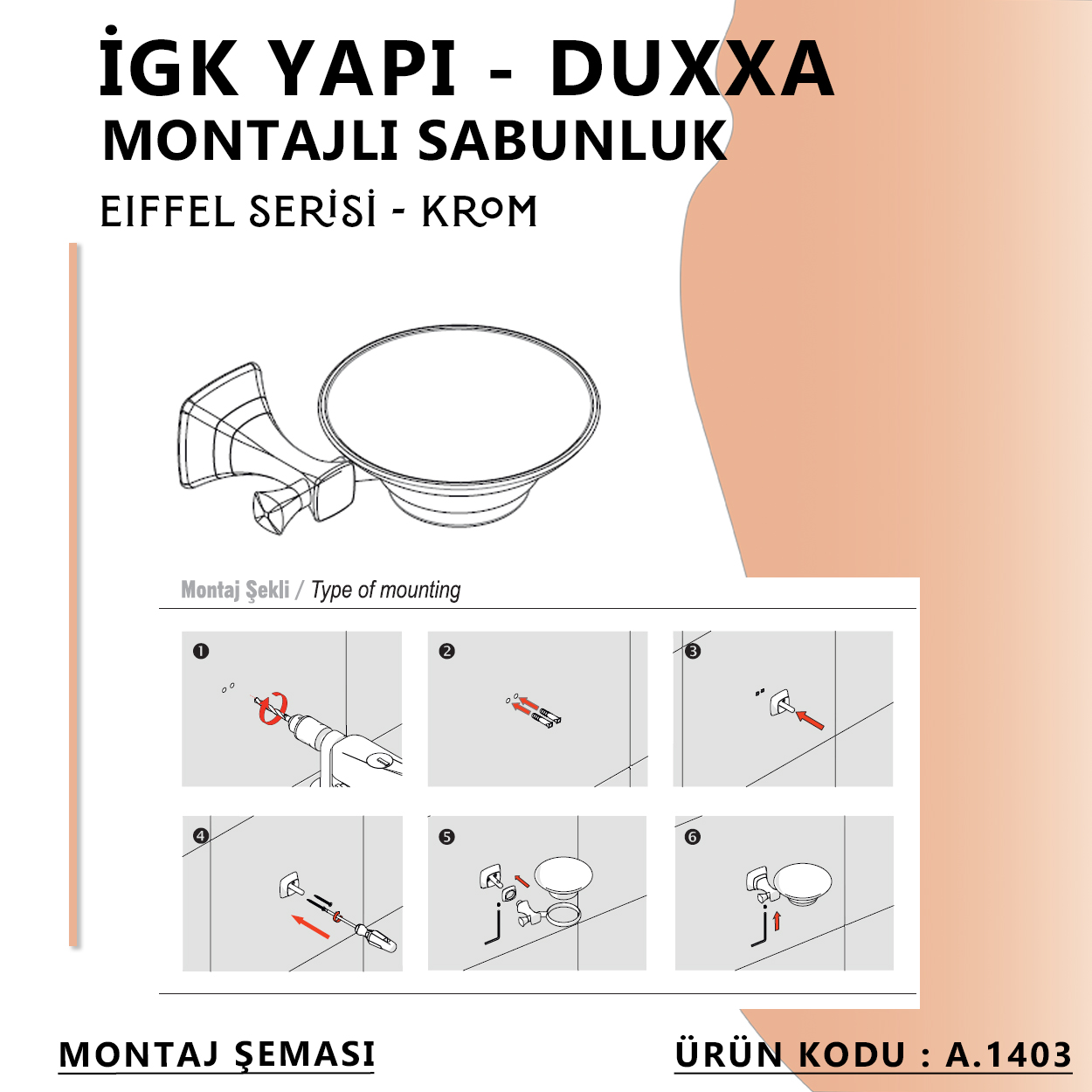 taşır. İGK YAPI - Duxxa Eiffel Montajlı Sabunluk Krom (A.1403) ile banyonuzda bir yenilik ve