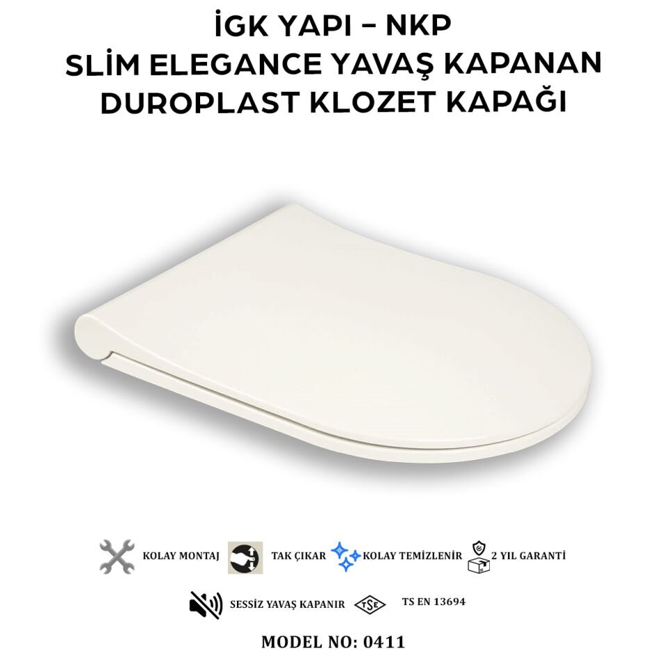 İGK YAPI - NKP 0411 SLİM ELEGANCE Yavaş Kapanan Duroplast Klozet Kapağı, dayanıklı yapısı,